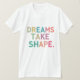 This t-shirt features the phrase "Dreams Take Shape" in a bold, vibrant, colourful font. The text is printed in multiple colours on a white t-shirt, making it a great way to express your aspirations and creativity. The design is eye-catching and inspiring, perfect for anyo