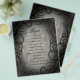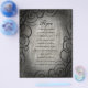 These invitations and other matching items have a gothic black and grey colour scheme with a swirling border. "All that we see or seem is but a dream within a dream".
