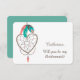 Here's a cute "Will You Be My Bridesmaid?" invitation card that features a pretty heart shaped dreamcatcher decorated with bright pattern feathers. Colours in the feathers include teal, gold, and pink, with a coral pink feather hanging at the bottom of the dreamcatcher image. Your custom text is soft brown at the right, and the background is white. The back of the invitation is matching bright teal with your custom text in white, and there is plenty of room to say whatever you'd like. Cute, with a touch of western flavour! This card matches wedding invitations and other wedding products in our store.