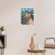 Poster with stunning graphic of an dreamer bear with red and white stripes around his shoulders like a blanket, under a starry sky. A motivational message saying "Hold onto your dreams." If you love the artwork but not the message, you can change it to whatever you want.