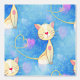 Dreaming cat, on white clouds and flying pink heart-shaped clouds..all over a blue sky.