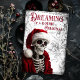 Dreaming of a Gothic Christmas Card. © Dark Heart Desires. This Gothic Christmas Card has a skeleton wearing a Santa hat and jacket and the words Dreaming of a Gothic Christmas on it. This card is blank inside so that you can add your own message.