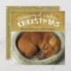 Have a cute photo of your favourite dog or cat sleeping? Here'a great Christmas card which features your favourite pet with "dreaming of a white Christmas" text over the photo. Colourful christmas light strings of red, yellow, blue and green decorate the design. Gold foil in the background which sets off the white text perfectly.