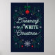 An Elegant and Modern Vintage Christmas Poster features a snowy background, snowflakes, sleigh bells, ribbon, ornamental flourished lettering, and pine branches botanical garland theme to represent the best of the holidays. It is inspired by the Christmas songs of Christmas past of the lyrics “Dreaming of a White Christmas” and is also a great way of expressing Holiday Cheer for those you care. Created with one-of-a-kind designed lettering and illustration for those who just love Unique and Novelty Styles! Designed by Katrina Sutton.