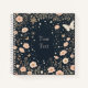 Pink flowers, white stars, and butterflies on a black background give this mini notebook a dreamy, magical look. Very pretty, feminine, fantasy image, perfect for journaling. Great for the home, at the office, or at school.
