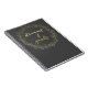 NewParkLane - Stylish Notebook, with quote 'dreams & goals' in elegant script / brush typography, with a gold flower wreath, against a dark grey background.
