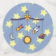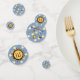 Bring out the dreamer in your little one with this playful, space-themed mobile adorned with a crescent moon, shooting star, bright sun, rocket ship, and colourful planet hanging from arms with blue and purple zigzag details and a star right in the middle. A pattern of pale blue stripes in two shades and soft yellow stars adds a nice background to the brightly coloured mobile. Each piece of confetti has a sun-shaped monogram spot on the back, where you can customise it with the baby's initial to create a truly unique party decoration for your baby shower. This confetti will match with any other Dreams of Space Mobile product so that you can easily make your event as coordinated as you desire.