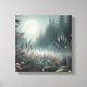 Symbolically, the scene represents a place of stillness and natural resilience. The ancient trees, the quiet light of the mushrooms, and the playful movements of the fireflies speak of the endurance of beauty and mystery in the world — even in its darkest, quietest corners. This is more than a decorative piece; it is a meditation on nature, memory, and the timelessness of moonlit moments.