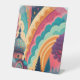 Transform any tabletop or reception area into a visual experience with this vivid pedestal sign featuring a stylised fairytale dome, swirling rainbows, and rich forest silhouettes. The design's saturated colours—turquoise, violet, orange, and blush—create a warm, uplifting ambiance, making it perfect for events that celebrate connection, creativity, or cultural flair.