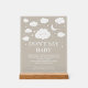 Enhance your heaven sent baby shower theme decoration with this Personalised Cloud Baby Shower Game Don't Say Baby Acrylic Sign. Perfect as cloud baby shower theme decoration or heaven sent baby shower theme centerpieces, it adds a dreamy touch to your event. Ideal for cloud 9 baby shower theme centerpieces and cloud 9 baby shower theme decorations, this piece fits perfectly with cloud theme baby shower ideas for both boys and girls.