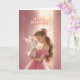 A radiant, fairytale-inspired birthday card featuring a young woman in a soft pink gown sharing a tender moment with an adorable bunny dressed in matching pink. Bathed in warm, glowing light, this design captures sweetness, elegance, and celebration. Perfect for anyone who adores romantic, uplifting, and beautifully magical birthday artwork.