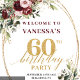 Dreamy Boho Burgundy Floral Gold 60th Birthday Tapestry