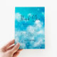 Dreamy and boho cloud nine theme baby shower thank you template card featuring watercolor illustration of turquoise blue sky with stars and clouds.