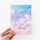 Dreamy and boho cloud nine theme baby shower thank you template card featuring watercolor illustration of pink and purple sky with stars and clouds.