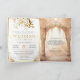 Amaze your guests with this elegant all in one Indian wedding invite featuring beautiful arches decorated with curtains and cream flowers. Modern gold typography with QR Code for online RSVP. Simply add your event details on this easy-to-use template to make it a one-of-a-kind invitation.