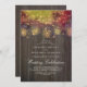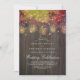 Rustic and romantic wedding invitation - fireflies, mason jar, string lights, and barn wood background.