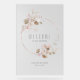 Delicate, foliage arrangements with small flower accents in soft, dreamy shades of cream, taupe and rose gold with splashes of glitter, and unique design layouts make this an exciting collection, especially for spring weddings. The acrylic wedding welcome sign shown here features a foil-effect circular frame bordered by foliage on a frosted-glass effect background. Easily add your names and wedding date using the provided template. View the collection link on this page to see all of the matching items in this beautiful design or search ID817 to see other pieces and colour choices for this set.