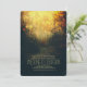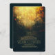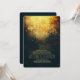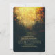 Charming rustic wedding invitation features old path in the enchanted forest and trees decorated with string of lights. This dreamy invitation is perfect wedding stationery for outdoor wedding in the woods, camping wedding theme or for fairy tales inspired weddings.