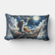 Dreamy Girl Rowing Boat Moonlit Fantasy Scene Lumbar Cushion
