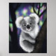 Bring a touch of whimsy and wildlife to your space with this heart-melting illustration of a fluffy koala perched in a tree under a glowing, magical night sky. Soft, painterly details and luminous colours create a serene atmosphere, perfect for nurseries, cosy corners, or dreamers of all ages.