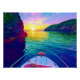 Dreamy Mediterranean summers on the sea are what we all desire! Originally a photo taken while travelling by speed boat near Toulon, France, this serene sunset reflects on the turquoise water and has a peaceful atmosphere. It is colourful, vibrant and relaxing.