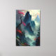 Beautiful majestic, dreamy, and misty mountain landscape with trees and river painting on a canvas print.
