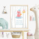 This enchanting poster is perfect for a baby boy’s room. It features a loveable pink piggy, dressed in a cosy blue and white striped sleeping hat and scarf, sitting on a fluffy cloud. Beside the piggy is a friendly moon character, also wearing a matching cap. The scene is set against on a soft white background with grey birch trees, creating a peaceful forest atmosphere. The poster includes a heartwarming bedtime phrase: “Read me a story, tuck me in tight, tell me you love me, and kiss me goodnight,” making it an ideal addition to your little one’s bedtime routine. The name on the poster can be personalised, making it a unique piece for your baby boy’s room. This poster is from the collection Sleepy Piggy Wall Art Piggy Nursery Room Decor, where you can find other matching products with this cute little sleepy piggy.