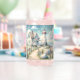 Customise the sentiment by replacing with your own favourite quote. This enchanting coastal artwork features a whimsical lighthouse and a pastel-painted seaside cottage nestled by the shore. A winding wooden boardwalk leads past soft boulders and blooming wildflowers, inviting the viewer towards a starlit sea beneath a dreamy sky. Delicate pines and a glowing window suggest warmth and comfort inside, while seabirds drift above in gentle flight. With its softly illustrated lines, serene colour palette, and storybook charm, this design captures the essence of a quiet moment by the water’s edge—perfect for evoking peace, nostalgia, and imaginative calm. AI generated artwork.