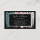 This elegant and glamourous business card features green, pink and silver brush strokes with sequins and glitter on a black background. The text combines handwritten script and modern sans serif fonts for a classy and sophisticated look. This is perfect for make up artists, beauticians, spas, fashion stylists, interior design and more.