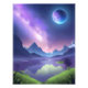 This is a breathtaking digital art piece capturing the perfect fusion of the vast cosmos and a fantastical terrestrial landscape. Dominated by deep purple and enchanting pink hues, the artwork depicts a magnificent Purple Galaxy streaking across the night sky, with a huge blue-purple planet hovering above. The mountains below are mirrored in a calm, glass-like lake, creating an otherworldly atmosphere filled with mystery and fantasy. The vivid green foreground adds vitality to the scene, beautifully contrasting with the cool-toned cosmos. This design is perfect for buyers who love sci-fi, space, romantic, or fantasy art. Whether printed on posters, T-shirts, phone cases, pillows, or any home goods, it will add a unique and captivating touch of colour to your living space.