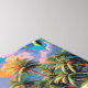 Escape to paradise with this dreamy tropical beach sunset painting. Lush palm trees sway gently in the breeze as the fiery sun dips below the horizon, casting a warm glow over the calm ocean. This captivating piece of art is sure to transport you to your happy place.