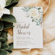 Bridal shower invitations featuring dreamy white winter floral and leaves.