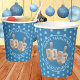 Create your own unique and special party supplies like these cute personalised Hanukkah paper cups printed with blue polka dots and a rustic oak dreidels design. Text in a simple white font curves above and below the central dreidel images and you can edit that text to add your name, the year, etc. These custom Chanukah paper cups are sure to be a delight at both a children's party and a gathering of adults and will help make clean up a breeze. Add a custom touch to your Festival of Lights celebrations with personalised custom party supplies for Hanukkah like these cute little paper cups.