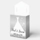 Bridal Dress and tuxedo themed wedding favour boxes. Custom personalised design with names and date.