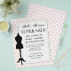 A flyer with a background of pink polka dots, a black silhouette of an old fashioned dress form, and a border to put all your boutique's info. Customise this flyer to fit your needs by changing the text, fonts, even removing the polka dot background and changing the background colour if you need..