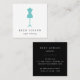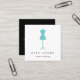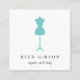 Elegant business cards for seamstresses, fashion designers, and tailors in a unique square format feature a dress form in chic vibrant robin's egg blue with two lines of custom text beneath in crisp black. Customise the back with your full contact details in white lettering on a black background.