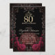 Dress,Tiara,Red Roses Gothic Frame 80th Birthday Invitation