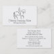 A business card for riding instructors and dressage trainers, or any equestrian business with a simple black outline of a horse and rider performing a piaffe on a customisable white background, with a template on the reverse for address details. The background colour and card stock can be changed to your choice.