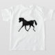This girl's t-shirt has artwork by me, Kristie Hubler, called, "Dressage Horse", which depicts a sport, an Englisth style of horse riding, the rider wears boots, a black top hat, white pants tucked into their boots, a black coat and tails. I was asked to do some artwork for people who loved horses, specifically Dressage. Great for the equestrian, equine community, those into horses, horse racing, or any horse lover.