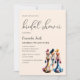 Modern and stylish Bridal Shower invitation featuring watercolor painting of three elegant, hourglass-shaped women wearing form-fitting and lightweight dresses of vibrant colours and patterns. Their hair styles and colour palettes differ and each carries a small backpack, adding a touch of casual charm to the scene.