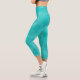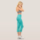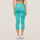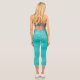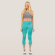 Teal cropped yoga pants. Bright dressy turquoise bottoms with printed sparkle and glitter texture. These comfy and elegant leggings are great for casual gatherings, leisure time at home as well as working out and enjoying various fun activities.