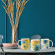 Introducing our Vintage Look Daisies Coffee Mug, a charming and nostalgic addition to your kitchen decor. This two-sided mug features a rustic ochre and soft turquoise background, with light blue dried daisies as the focal point.