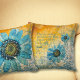 Dried Blue Daisies on Ochre Surface Flowers Quotes Cushion