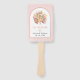 Tropical dried palm leaves, pampas grass and protea flowers pink arch botanical wedding hand fan program. This lovely wedding design features an arch frame on soft pink stained background. In the frame there is a bouquet of dried palm leaves, protea flowers and pampas grass.