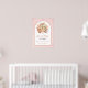 Tropical dried palm leaves, pampas grass and protea flowers soft pink arch botanical welcome wedding poster. This lovely wedding design features an arch frame on blush pink stained background. In the frame there is your text, a bouquet of dried palm leaves, protea flowers and pampas grass.