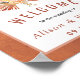 Tropical dried palm leaves, pampas grass and protea flowers terracotta arch botanical welcome wedding poster. This lovely wedding design features an arch frame on terracotta stained background. In the frame there is your text, a bouquet of dried palm leaves, protea flowers and pampas grass.