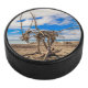 Driftwood artwork on Hokitika Beach, New Zealand Hockey Puck