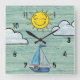 Medium square wall clock Driftwood Beach design. Jade edition With numbers.