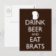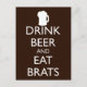 DRINK BEER AND EAT BRATS POSTCARD