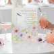 This drink pedestal sign features a hand-painted watercolor of a graceful whooping crane surrounded by soft pink, violet, and peach anemones. Symbolizing devotion and new beginnings, the romantic floral artwork adds a refined botanical touch to the celebration.